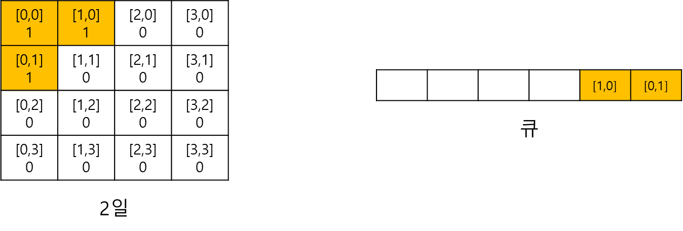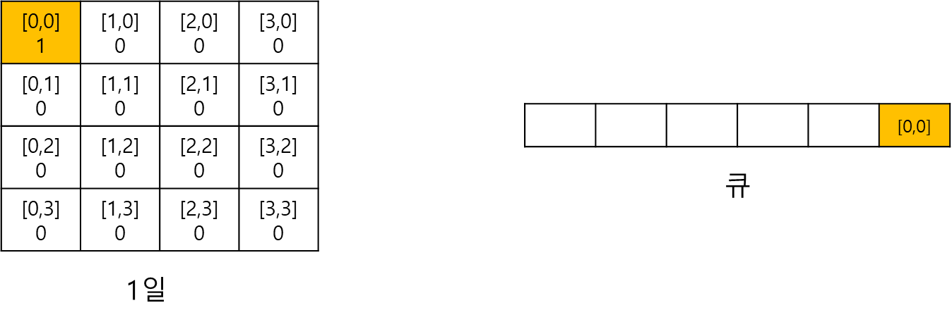 우 [1,1] = 익지 않은 토마토 큐에 추가