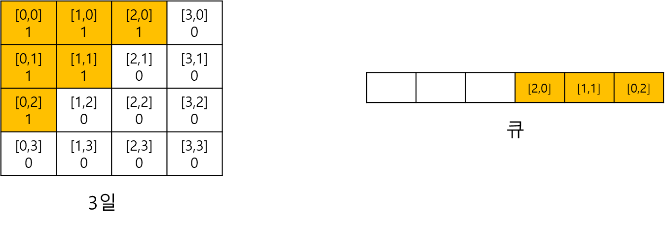 익지 않은 토마토의 좌표를 큐에 넣어주고 다시 작업을 진행합니다.