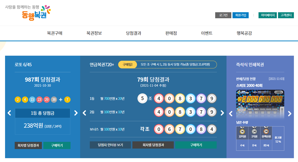 먼저 로또 당첨번호를 확인하기 위해 동행복권 사이트로 이동합니다.