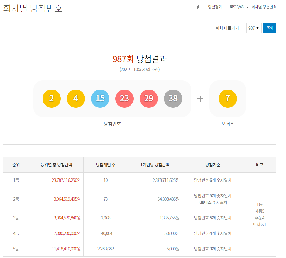 '당첨결과 > 회차별 당첨번호'