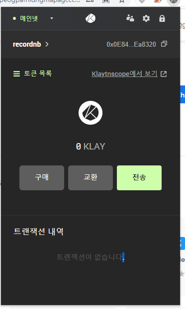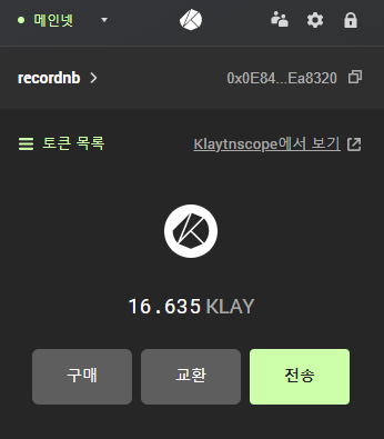 거래소에서 지갑으로 클레이튼을 전송하였다면 아래와 같이 지갑에 전송받은 클레이튼이 표시된다.